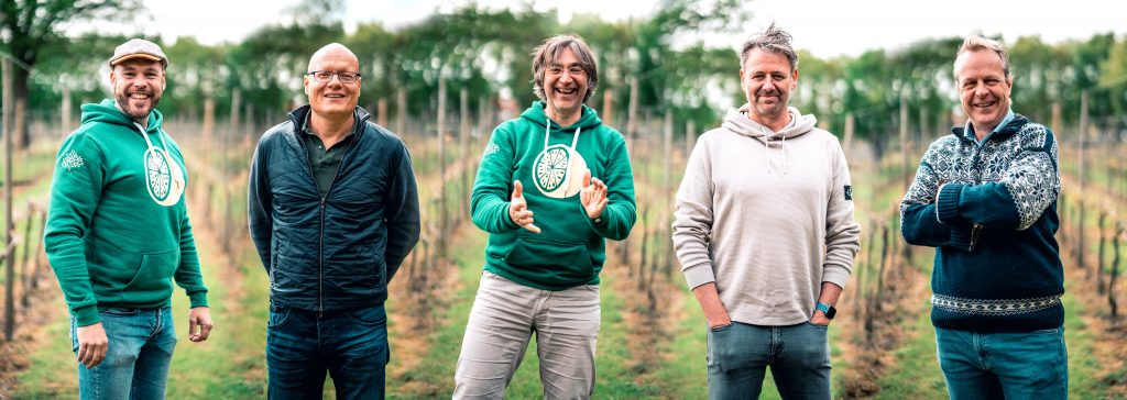De 5 hebben geen ervaring met het maken van wijn, maar wel het de productie van bier. Pieter van Doorn en Piet Tirion zijn de geestelijk vaders van brouwhuis De Goede & De Stoute, bekend van Vuurzee. Dat is een culinair biertje. De 2 maken het  op basis van champagnegist uit Frankrijk en pinot noir druiven uit Hongarije. Sterrenrestaurants in binnen- en buitenland schenken het. De overige 3 participeren met geld in Vuurzee. “Wij willen er graag een puur Nederlands product van maken. En daarvoor hebben we een wijngaard op eigen bodem nodig. Hier staat nu al een kleine hoeveelheid pinot noir. Dus het begin is er. Binnenkort hakken we knopen door over de aankoop van nieuwe wijnstokken.”